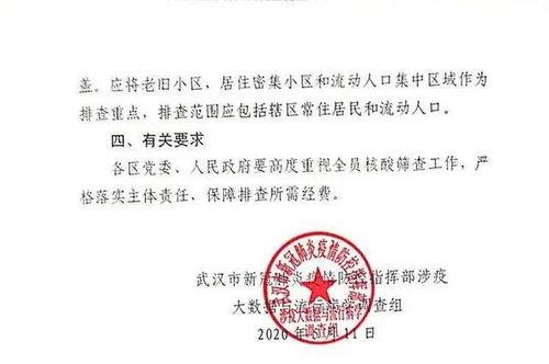 首先,咱們得先了解一下這次的通知都有哪些內容。據可靠消息,武漢市的核酸檢測政策又有了新的調整。這次調整主要包括以下幾個方面: